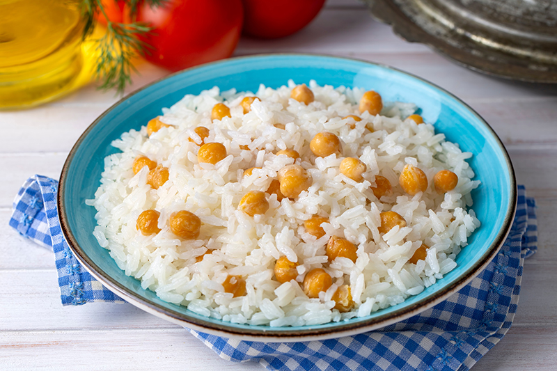 We’ve gone on and on about doughs and yufka here, but rice, or pilav, is another important Turkish staple. One of the quickest meals you can get is nohutlu pilav, a filling combination of boiled white rice and chickpeas, optionally served with a topping of shredded chicken. You can season it with black pepper, spicy ketchup or pickled peppers, and you’ll probably need some ayran to wash it down.