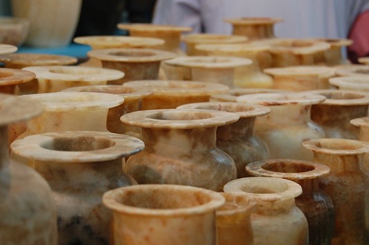 The ancient Egyptians used white alabaster stone to make the smooth, translucent perfume jars and vessels used in mummification. Today alabaster factories are all around Luxor, the best place to buy decorative sculptures, vases and small items like alabaster scarabs, pyramid replicas, and statues of the feline goddess Bastet.