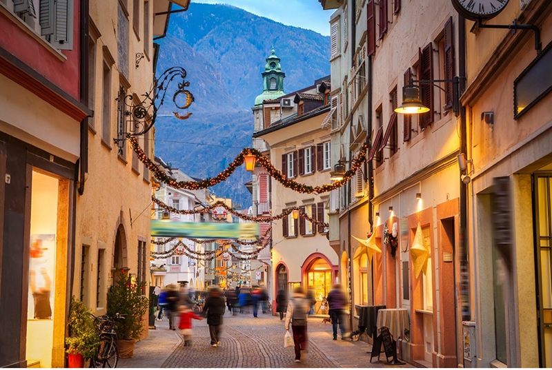 If you’re more excited for snow-dusted villages, glowing lights, and the smell of mulled wine, Europe’s alpine regions deliver postcard-perfect atmosphere. In South Tyrol (northern Italy), the Christmas markets of Bolzano, Merano and Brunico enchantingly blend German and Italian traditions. Expect wooden stalls selling spiced hazelnut cookies and hand-carved ornaments against a mountain backdrop. Just beyond the town squares, the Dolomites provide snowshoeing, skiing, and breathtaking scenery that make the season even more adventurous.