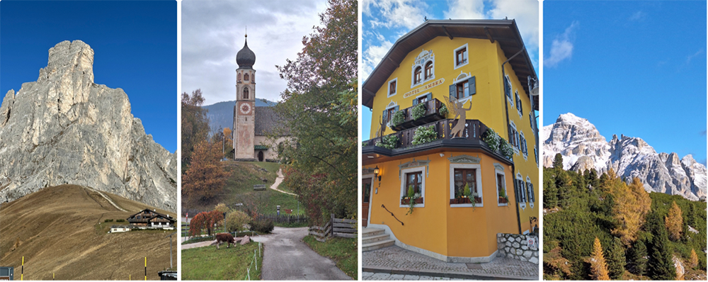 From there, continue on to Cortina d’Ampezzo, the stylish heart of the eastern Dolomites and recent Olympic host. Surrounded by some of the region’s most dramatic peaks, Cortina offers that immediate “wow” factor – along with easy access to scenic drives, cable cars, and mountain trails. For us, one of the real highlights is a leisurely lunch at a charming mountain rifugio. Reaching it by cable car, you can soak in panoramic views and watch the hikers or cyclists drift in and out. It’s the kind of invigorating yet unhurried scenic experience that perfectly captures the spirit of the Dolomites.