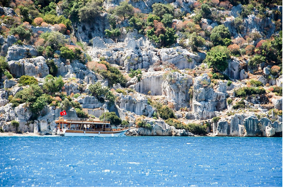 Further west of Antalya city (but still within the huge Antalya province), the ancient traveler would have come from the districts of Pisidia and Pamphylia to the enigmatic land of the Lycians. This region is completely breathtaking and mysterious, as hikers of the Lycian Way (a 320-mile trail) are well aware. The Lycians are particularly regarded for their unique funerary monuments, which include rock tombs cut into cliffsides and solitary stone sarcophagi.
