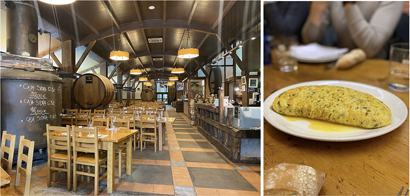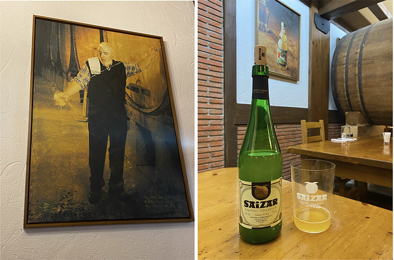 The exciting part of visiting a cider house is lining up to ‘catch’ the spout of liquid cider as it shoots from the barrel. This method of ‘throwing’ or pouring the cider from a significant height imparts a bit of natural carbonation to the still beverage. According to cider house rules, sagardoa should be consumed in small portions to preserve the optimum aromas.