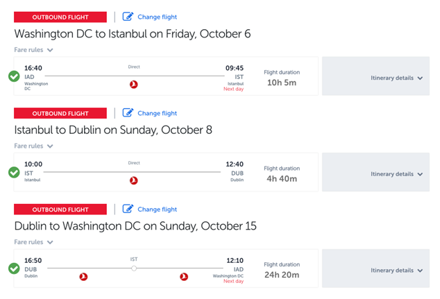 In the above scenario, there was not a big price difference between the roundtrip tickets from Washington, D.C. to Dublin and the price of the flight tickets with the Istanbul stopover added on. This all depends on your starting and ending points, but this can be an economical way to add a lot of intrigue to your European vacation.