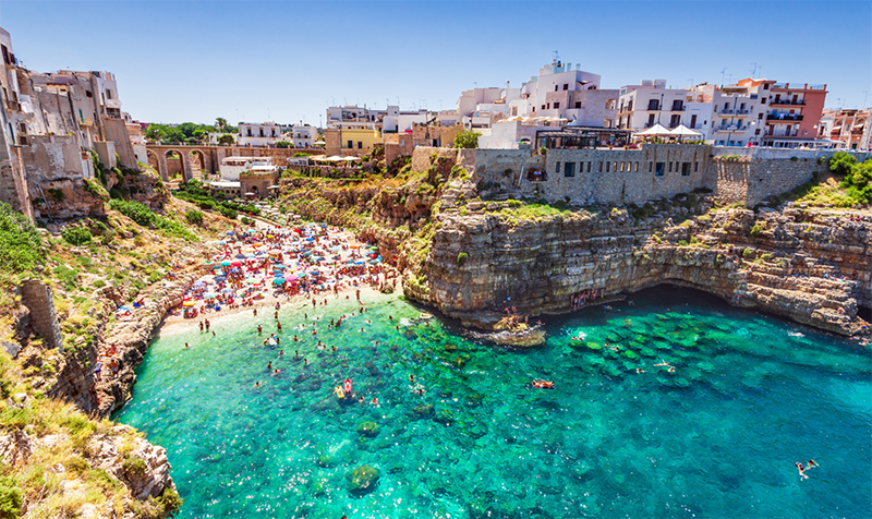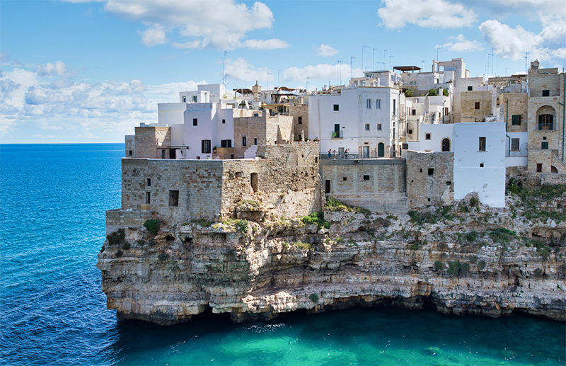 Polignano a Mare: Perched on limestone cliffs overlooking the Adriatic Sea, Polignano a Mare is a postcard-perfect village. Stroll along the panoramic promenade and marvel at the breathtaking views of the sea caves below. The Grotta Palazzese is a popular and unique restaurant set inside a limestone cave, offering unforgettable dining experiences.
