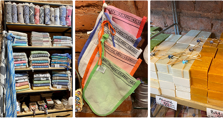 This cozy little shop on Galip Dede street, owned by a lovely American woman, is an excellent place to buy all Turkish-made natural soaps, spa towels, traditional hamam gloves, colorful wool socks, and aromatherapy products.