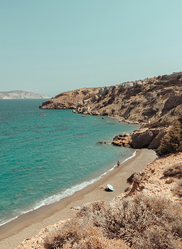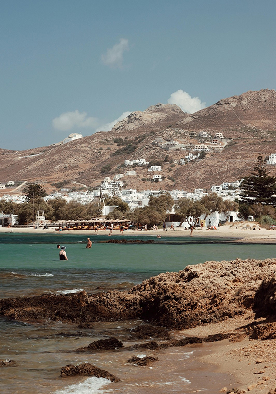 Naxos offers wide, shallow beaches perfect for kids, combined with a thriving agricultural heritage, authentic mountain villages, and ancient ruins. It’s relaxed and welcoming – ideal for curious travelers who want some local life with their beach time. This is the largest Cycladic island, so rent a car to explore all the towns and coastlines.